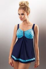 Купальник-танкини Ancona с контрастной отделкой. Танкини позволяет скрыть недостатки фигуры, не сковывая движений. Свободный крой верха купальника идеально подходит для беременных и обладательниц пышных форм. Купальник с плотной вшитой чашкой и плавками с высокой талией. Бретели на спинке регулируются по длине. В комплекте: топ и трусики.