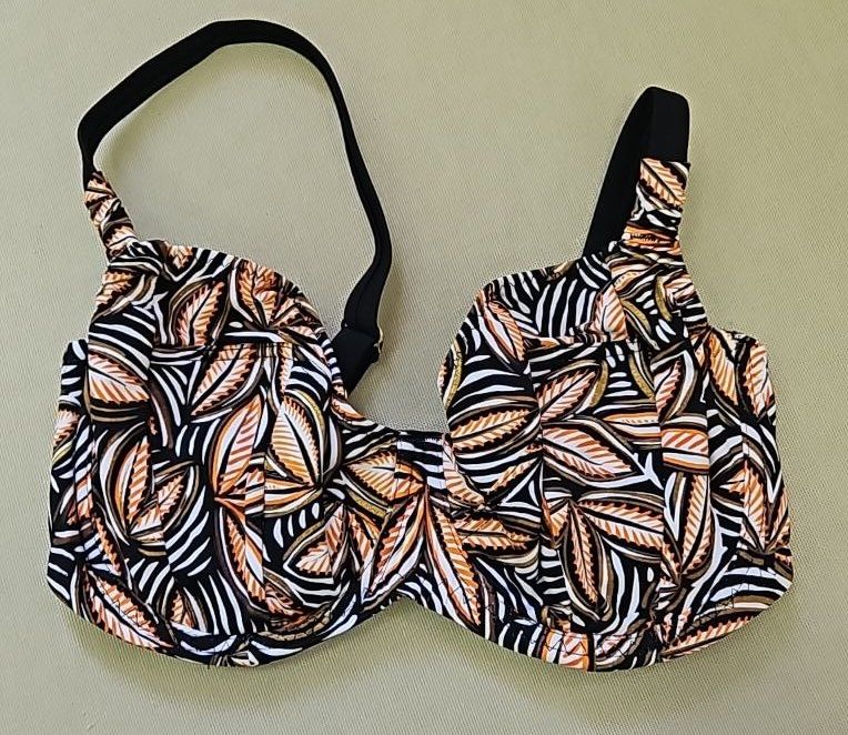Бюст с тонким поролоном, с косточками, с дополнительными боковыми поддержками, бретельки (черного цвета!) регулируются по длине, на спине застёжка, фурнитура металлическая. Внимание: плавки не входят в комплект!