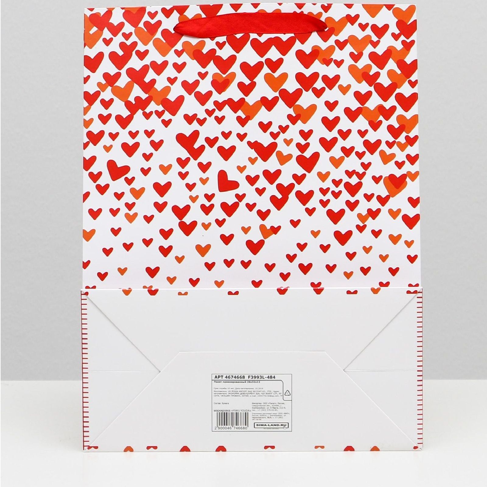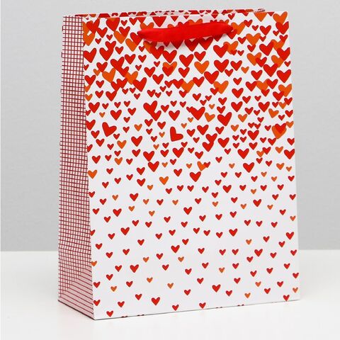 Ламинированный пакет с сердечками - 26 x 32 x 12 см.