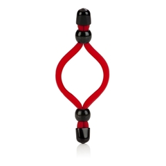 Мягкое и эластичное кольцо красного цвета на пенис. Черные пластиковые бусинки позволяют регулировать силу сжатия пениса. Продлевает эрекцию.