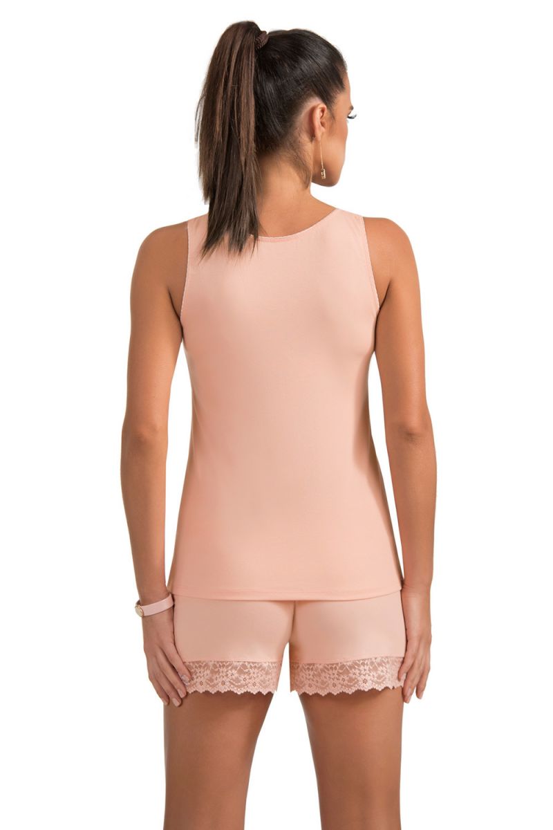 Легкий женский пижамный комплект Lucy с отделкой из ажурного кружева. В комплекте: топ, шорты.