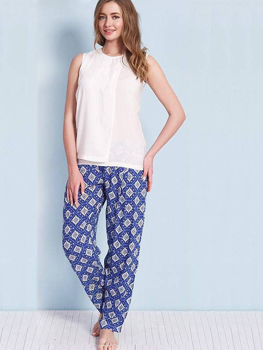 Комплект с брюками, зауженными внизу, из вискозной ткани и трикотажным топом. В комплекте: топ, брюки.