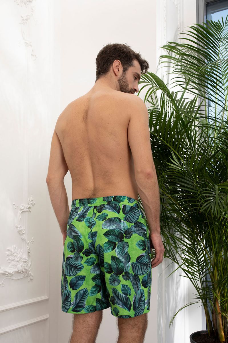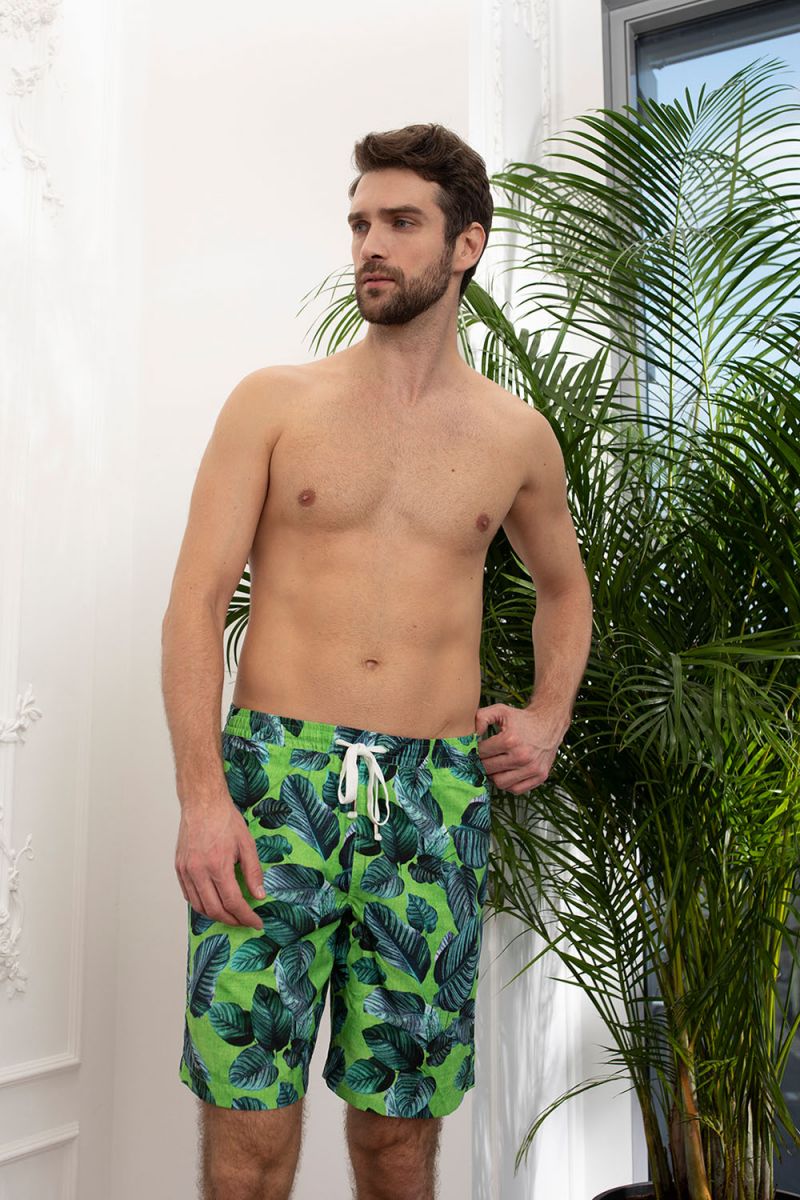 Летние мужские удлиненные шорты выполнены из быстросохнущей, легкой ткани. Классическая модель с подкладкой из сетки и комфортными, врезными боковыми карманами. Широкий, прорезиненный пояс-кулиска со шнурком белого цвета обеспечивает комфортную посадку шорт по фигуре. Сдержанный сине-зеленый пляжный принт привлекает внимание и поднимает настроение, располагая к безмятежному отдыху. Внутренняя отделка пояса и фирменная фурнитура гарантируют высокое качество модели.