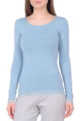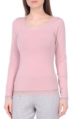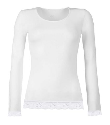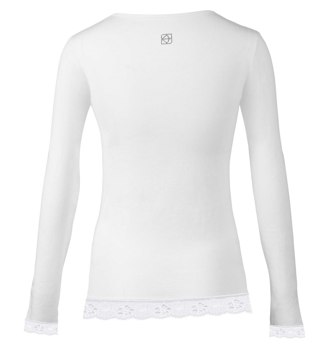 Лонгслив из эластичного хлопкового полотна. Низ изделия отделан узким эластичным кружевом.