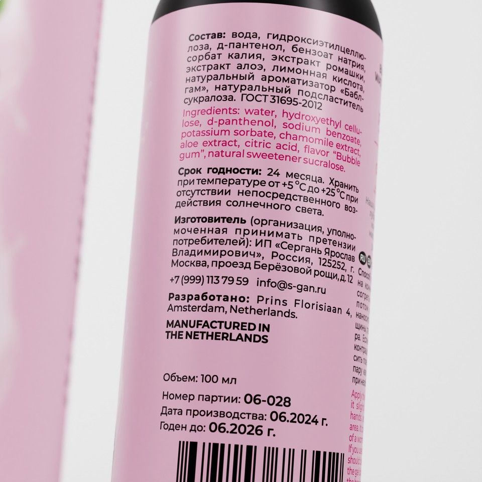Вкусовая линейка лубрикантов SGAN разработана с учетом физиологии, совмещает в себе вкус и аромат, при этом сохраняет все регенерирующие свойства классического лубриканта. Не оставляет липкости, без химического привкуса, не содержит сахара и калорий. Для сладости добавлен натуральный подсластитель - сукралоза. Абсолютно безопасен для проникновения и при проглатывании.