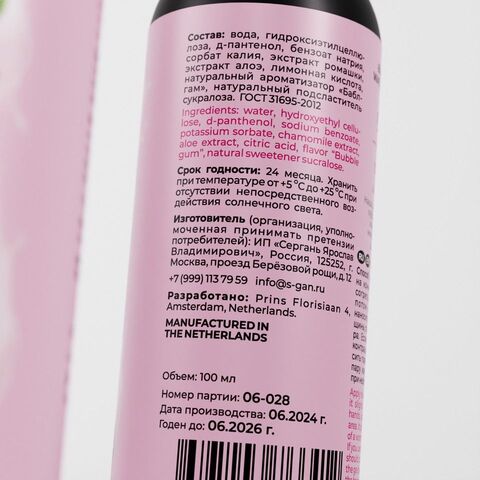 | Инструкция по применению | вода, гидроксиэтилцеллюлоза, д-пантенол, бензоат натрия, сорбат калия, экстракт ромашки, экстракт алоэ, лимонная кислота, натуральный ароматизатор Бабл гам, натуральный подсластитель (сукралоза). |