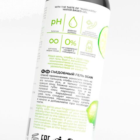Вкусовая линейка лубрикантов SGAN разработана с учетом физиологии, совмещает в себе вкус и аромат, при этом сохраняет все регенерирующие свойства классического лубриканта. Не оставляет липкости, без химического привкуса, не содержит сахара и калорий. Для сладости добавлен натуральный подсластитель - сукралоза. Абсолютно безопасен для проникновения и при проглатывании.