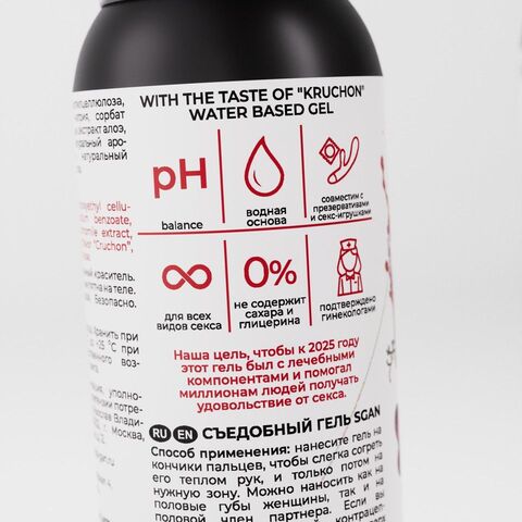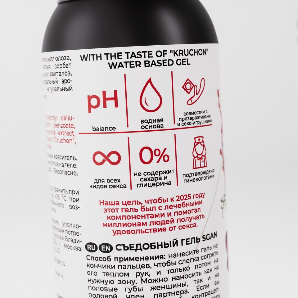 Вкусовая линейка лубрикантов SGAN разработана с учетом физиологии, совмещает в себе вкус и аромат, при этом сохраняет все регенерирующие свойства классического лубриканта. Не оставляет липкости, без химического привкуса, не содержит сахара и калорий. Для сладости добавлен натуральный подсластитель - сукралоза. Абсолютно безопасен для проникновения и при проглатывании.