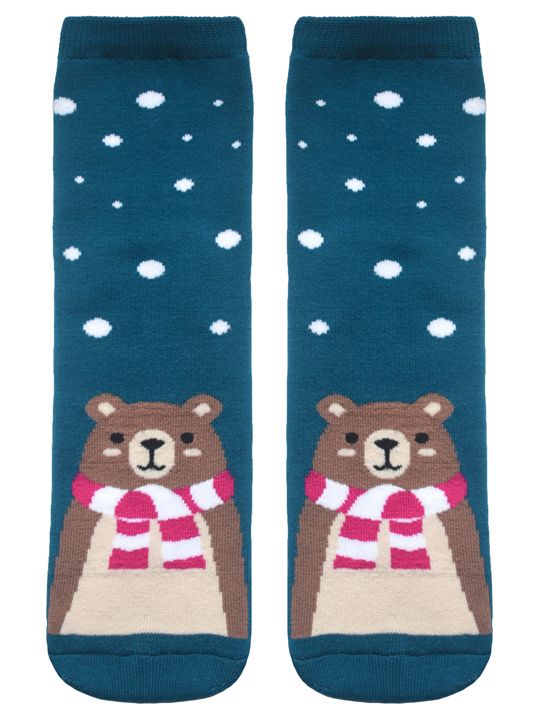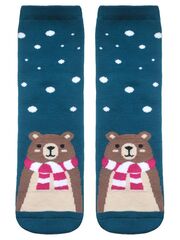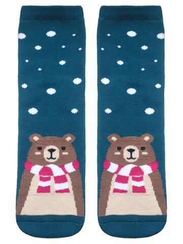 Махровые классические женские носки с рисунками мишки.