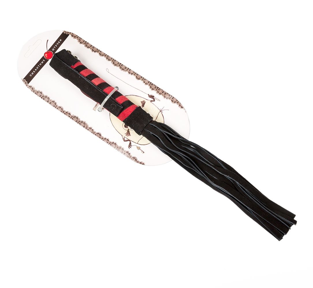 Маленькая плеть из замши с чёрно-красной рукоятью – 29 см.