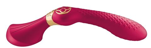 Малиновый двусторонний вибростимулятор ZOA - 26,5 см.