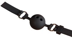 Малый силиконовый кляп-шар на ремешках. Кляп из силикона имеет отверстия для облегчения дыхания. Регулируемая длина ремня.