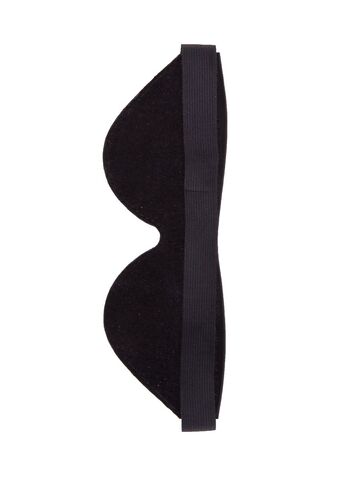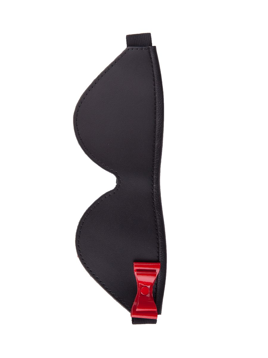 Маска на глаза закрытого типа из натуральной кожи черного цвета, украшенная красным лаковым бантом. Фиксирующая резинка позволяет легко регулировать размер изделия. Внутренняя часть имеет подкладку из велюровой бархатистой кожи. Ширина - 7 см.