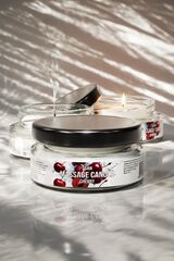 Массажная свеча с ароматом спелой вишни SGAN в стеклянной банке — это натуральное средство для расслабления, ухода за кожей и создания романтической атмосферы. Свеча изготовлена из 100% кокосового воска с добавлением ароматического масла спелая вишня и хлопкового фитиля, что обеспечивает безопасное и чистое горение. При нагревании свеча превращается в тёплое массажное масло, которое глубоко увлажняет, питает и смягчает кожу, делая её шелковистой и ухоженной. Приятный аромат вишни наполняет комнату уютом и гармонией.