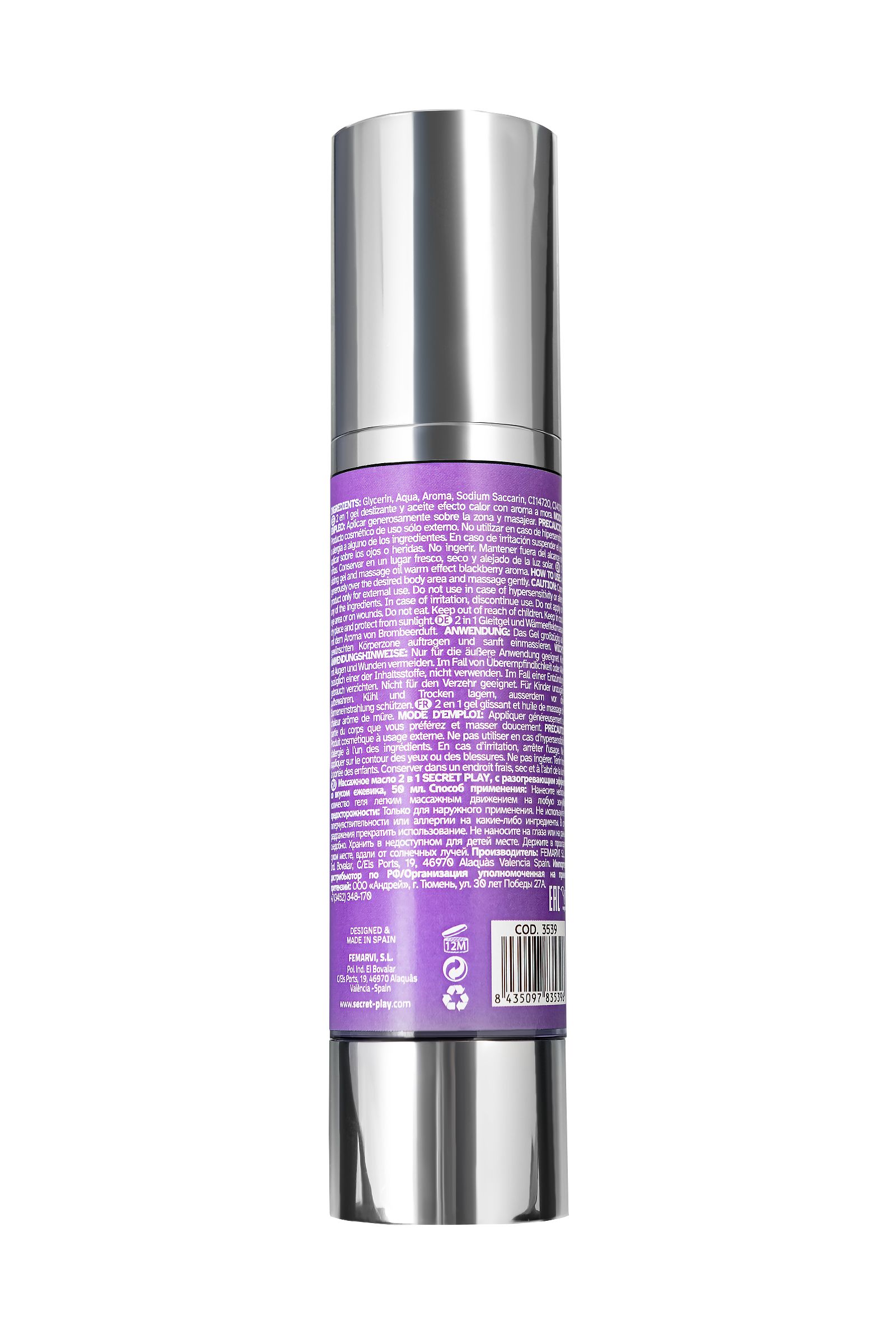 Blackberry Hot Effect — массажное масло 2 в 1 от Secret Play с разогревающим эффектом и насыщенным вкусом ежевики, созданное для тех, кто хочет привнести нотку сладкой чувственности в свои интимные моменты. Это универсальное масло идеально подходит для прелюдий, оральных ласк и чувственного массажа, даря незабываемое тепло и мягкость в каждом прикосновении. Его сладкий, ягодный аромат ежевики окутывает воздух, создавая атмосферу страсти и расслабления, а разогревающий эффект усиливает чувственные ощущения, делая ласки более яркими и глубокими. Масло легко скользит по коже, обеспечивая комфорт и наслаждение, превращая любой момент близости в настоящее удовольствие. Blackberry Hot Effect открывает перед вами мир наслаждений — нанесите его на эрогенные зоны, такие как шея, плечи или соски, и ощутите, как тепло пробуждает чувственность и усиливает удовольствие. Благодаря универсальной глицериновой основе, масло можно использовать как для чувственного массажа, так и в качестве лубриканта для незабываемых прелюдий. Погрузитесь в мир сладкой чувственности с Blackberry Hot Effect и превратите каждый поцелуй и прикосновение в незабываемое удовольствие.
