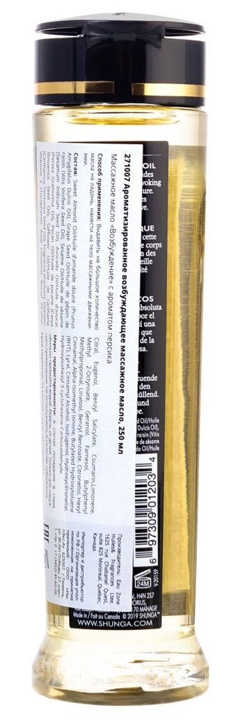 Это на 100 % натуральное масло с упоительным ароматом, легко скользит по коже, не оставляя жирной пленки. Запах массажному маслу придают эфирные масла и отдушки, что в отличие от большей части другой продукции SHUNGA, ароматизированной вкусовыми добавками, делает его несъедобным.