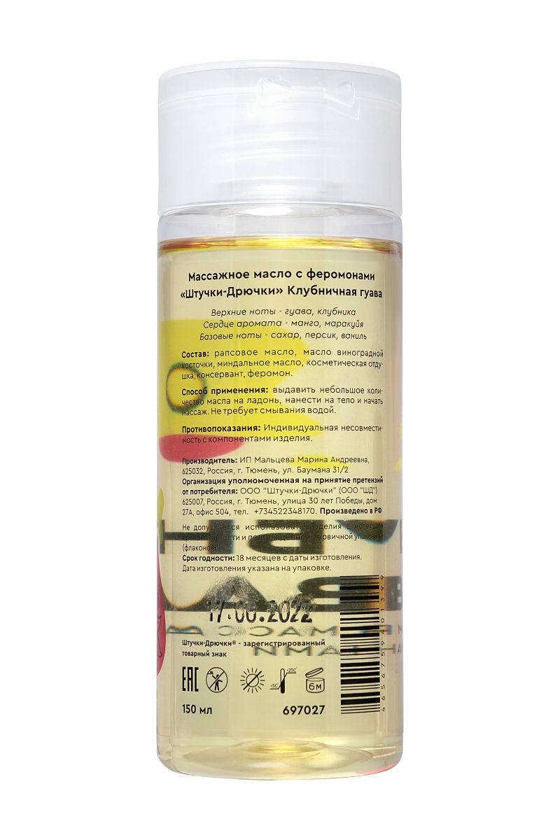 Расскажите о своих чувствах с помощью прикосновений – нежных и легких или страстных и интенсивных. Массажное масло с феромонами Клубничная гуава пробуждает сексуальное желание, снимает усталость и дарит прилив сил для эротического продолжения.