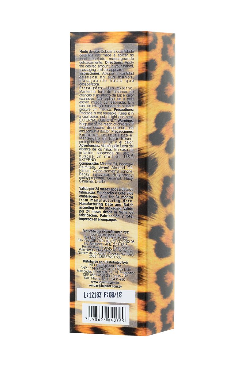 Массажное масло Intt Sauvage by Fatima Moura с возбуждающим эффектом — ритуал красоты и сексуальности в каждой капле. Бесподобно для любого массажа. Возбуждающие дикое желание афродизиаки, волнующая нежностью текстура масла и утонченный аромат превращают сеанс массажа в особенный ритуал. Вам будет хотеться только одного — отдаться чувствам без остатка. Безупречно для ухода за кожей. Комплекс ценных масел и витаминов придает коже мягкость, увлажненность и потрясающе ухоженный вид. Включите энергию страсти на полную с Intt Sauvage by Fatima Moura.