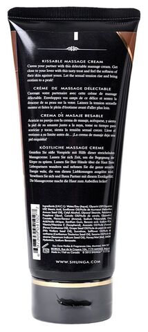 Массажный крем для тела с изысканным ароматом шоколада. Съедобный, не содержит сахара. Дарит коже гладкость и увлажнение, обеспечивает длительное скольжение. Нежирный, дарит ощущение свежести, превращает тело партнёра в лакомство.