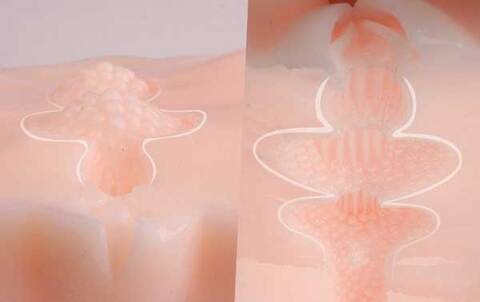 -Большие и малые половые губы выполнены в разных цветах (бежевом и красном), что дает простор для вашего воображения при открывании больших половых губ. -Реалистичные ощущения девственной вагины.