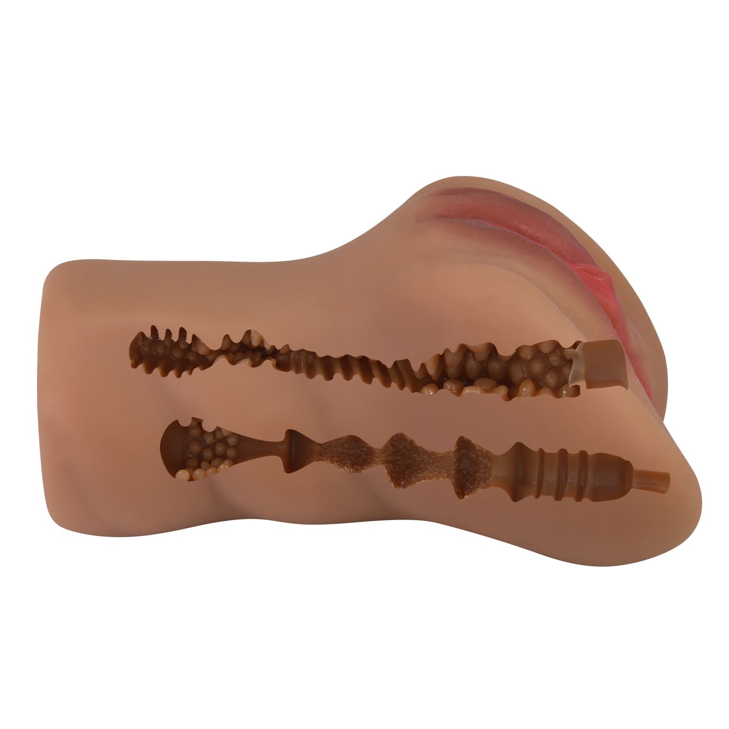 Мастурбатор-вагина Caroline темно-бежевого цвета. Высокая реалистичность. Два тугих рельефных тоннеля.