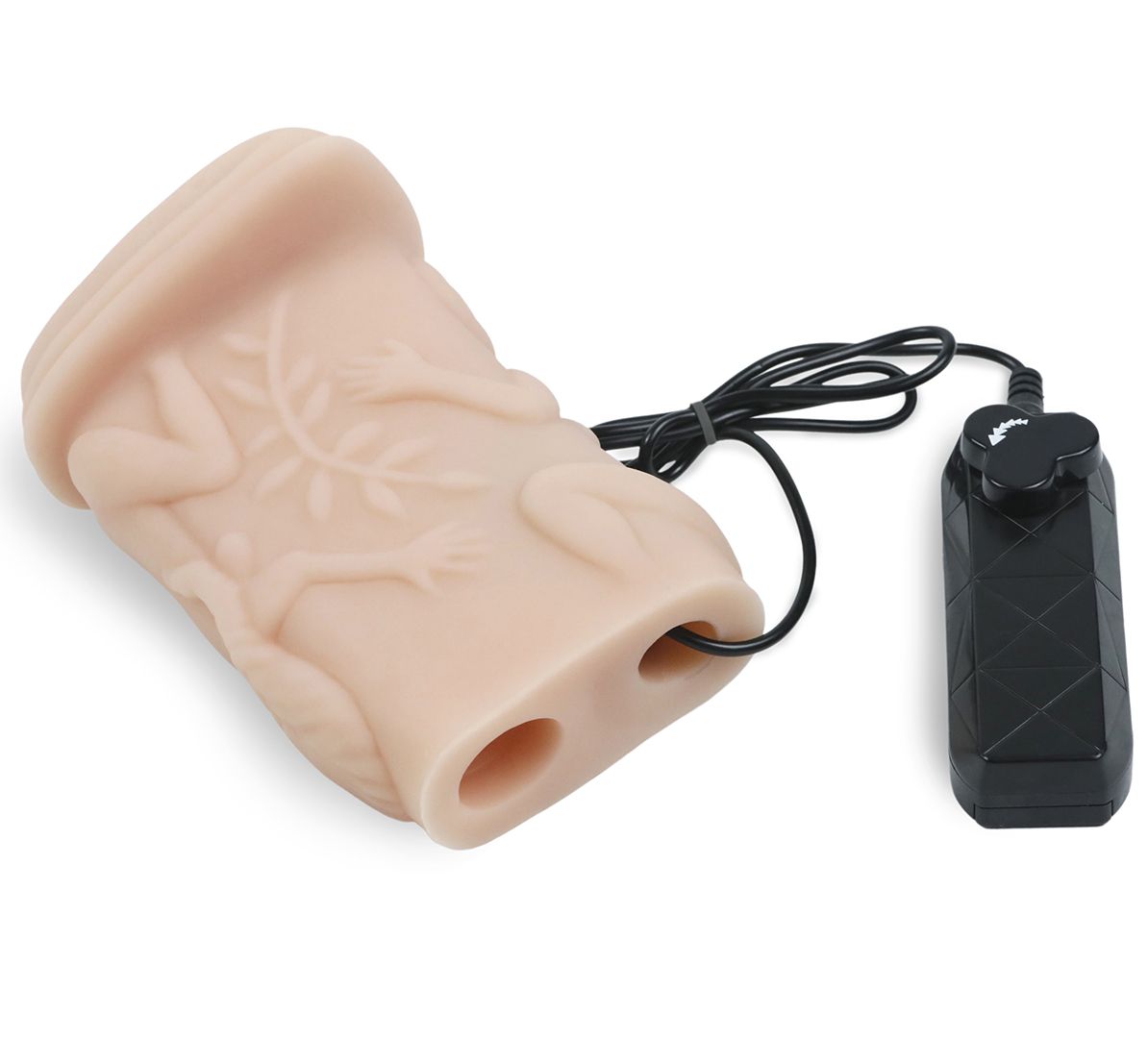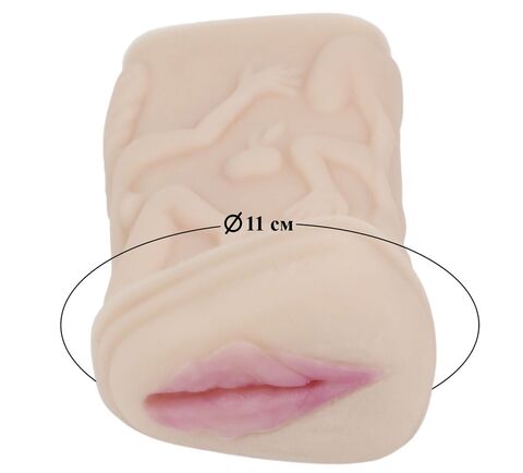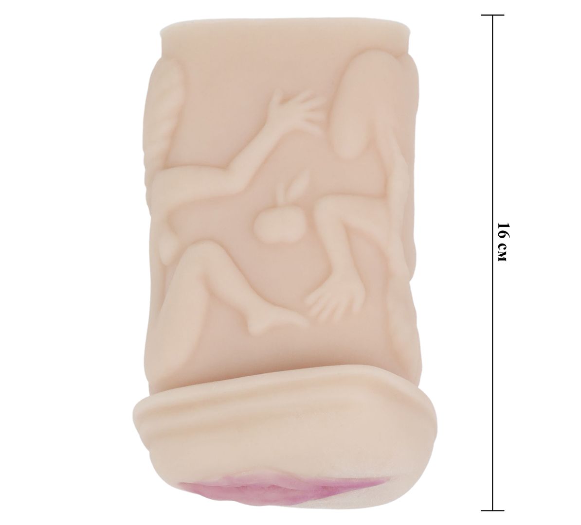 Вход в рельефный тоннель окружают пышные розовые половые губы. Поверхность украшена объёмным рисунком для предотвращения выскальзывания игрушки из рук на пике блаженства.