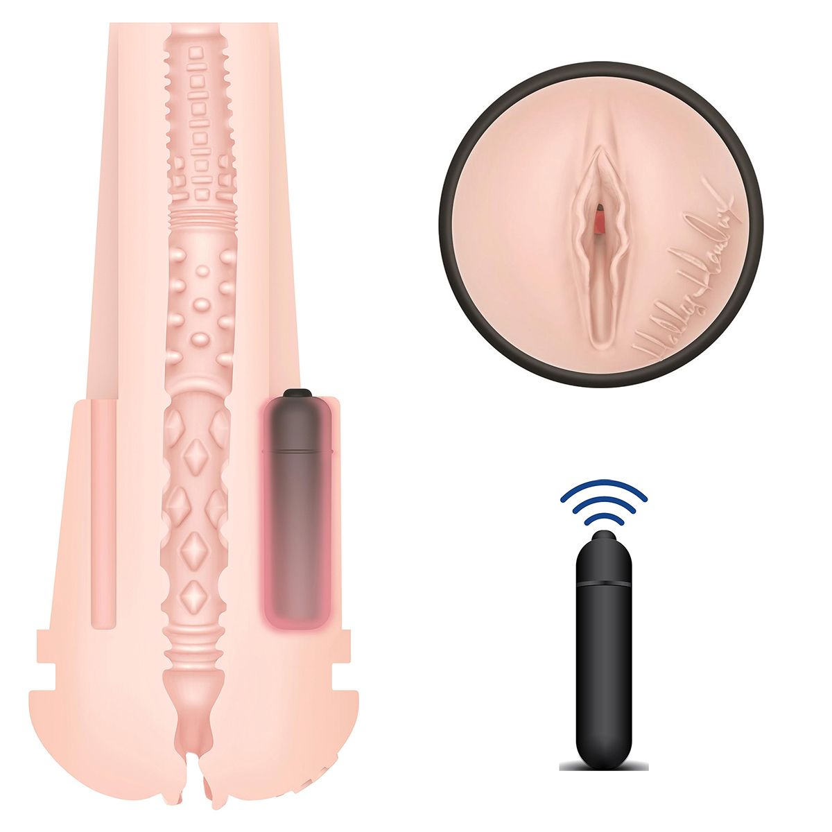 Holly Hendrix - молодая развратная красотка, а этот мастурбатор - реплика ее прелестей из мягкого и нежного материала телесного цвета с невероятной поверхностью внутри тоннеля. В комплекте есть вибропуля, которая устанавливается в специальный кармашек на насадке.