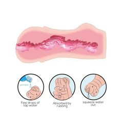 Мастурбатор с вагинальным отверстием изготовлен из особенного материала. Особенность заключается в том, что при добавлении нескольких капель воды в тоннель мастурбатора, материал принимает консистенцию скользящей, увлажняющей смазки. Имеет натуральный телесный цвет и очень правдоподобные внутренние складки, которые приносят ощущение полноценного сексуального контакта за счет плотного облегания ствола пениса.