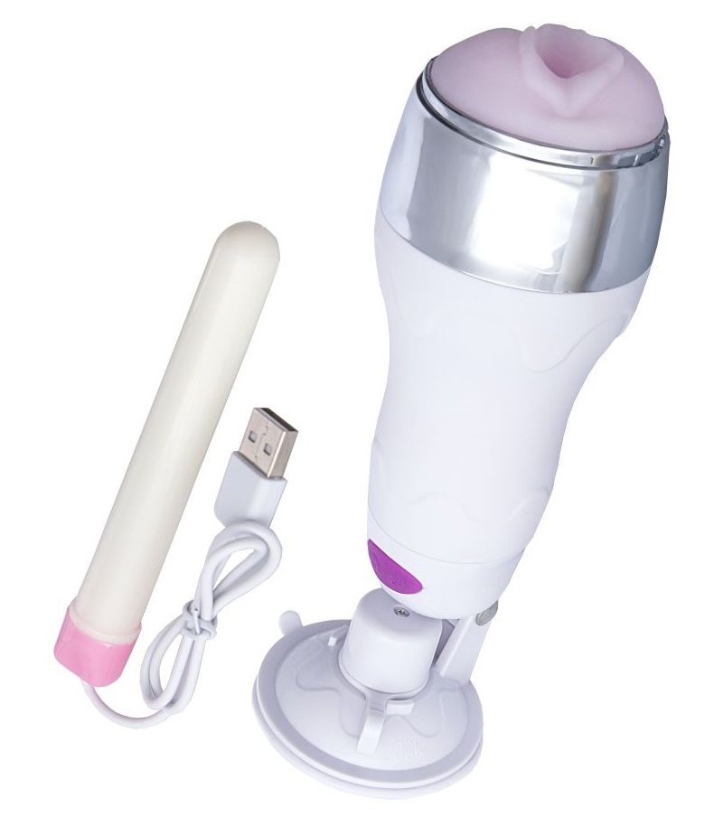 Мастурбатор-вагина в белой колбе с присоской и функцией нагрева