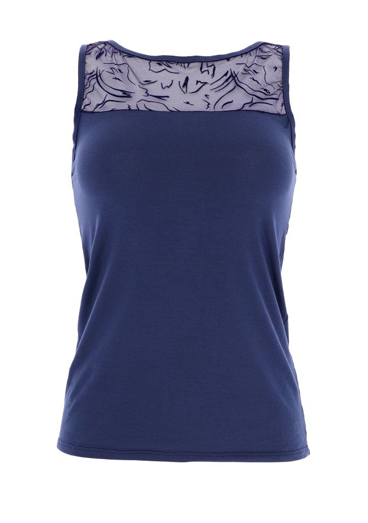 Женская майка-топ из микромодала со вставкой из эластичного полупрозрачного кружева.