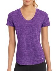 Меланжевая футболка с короткими рукавами и V-образным вырезом, приталенного силуэта. Выполнена из особого полиэстерного трикотажа по технологии Champion Vapor. Она превосходно отводит влагу, оставаясь сухой. Защита от запаха FreshIQ. Прикосновение плоских швов практически не ощутимо. Изделие декорировано светоотражающим фирменным логотипом.