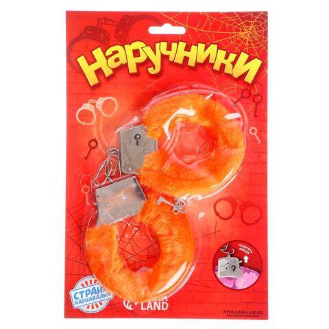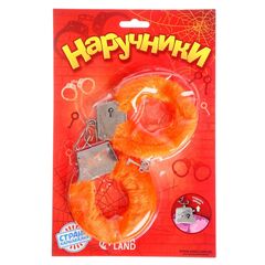 Металлические наручники с оранжевой плюшевой отделкой.