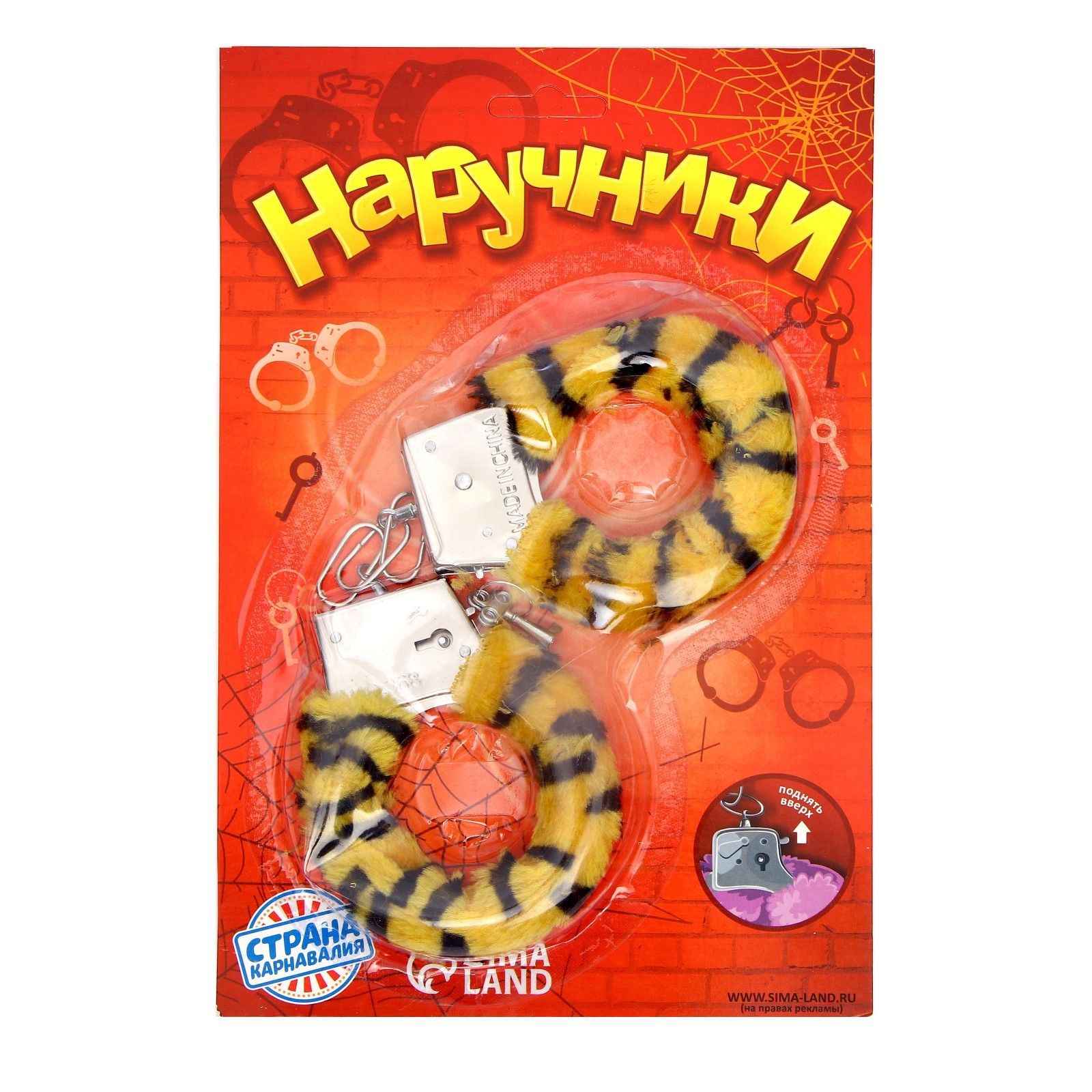Металлические наручники с тигровой плюшевой отделкой.