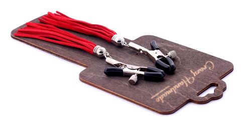 Металлические зажимы на соски с красными замшевыми кисточками