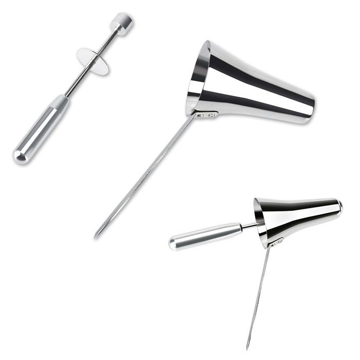 Металлический анаскоп для имитации осмотра у врача. Анаскоп вводится в анус вместе с обтюратором, после чего обтюратор извлекается. Цилиндр анаскопа абсолютно гладкий, не имеет зазубрин и неровностей.