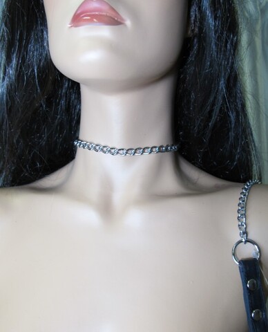 Поводок изготовлен из натуральной кожи. При изготовлении использована фурнитура с никелевым покрытием. Металлическая цепочка (поводок), с карабином на конце, поможет вам с лёгкостью управлять своим партнёром. Длина цепочки - 85 см., ширина - 0,5 см.