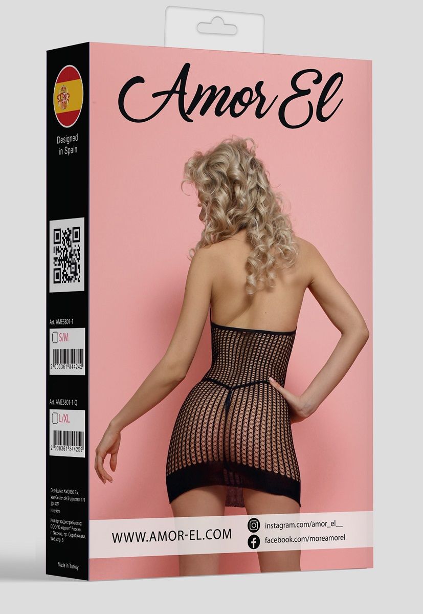 Эротическое мини-платье на бретели. Оно имеет очень сексуальный рисунок в мелкую тройную сетку. Благодаря использованию большего количества нейлона, белье сохраняет очертания, не деформируется, растягивается и выгодно облегает фигуру.