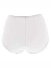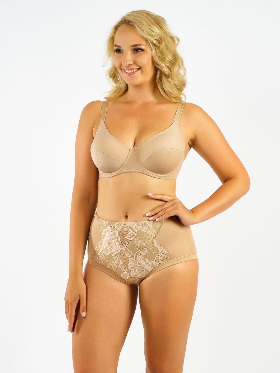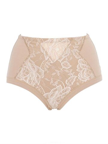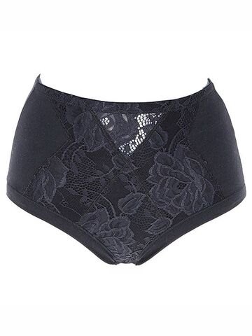 Трусики-утяжки выполнены из плотного эластичного хлопка тянущегося в две стороны и кружева в декоре. Передняя деталь дублирована смягченным слоем и обеспечивает дополнительную поддержку в области живота. Линия открытия ноги обработана окантовкой, не раздражает кожу и не оставляет следов в деликатной зоне. Высота бочка 18 см. Высокая посадка талии. Ластовица из органического хлопка.