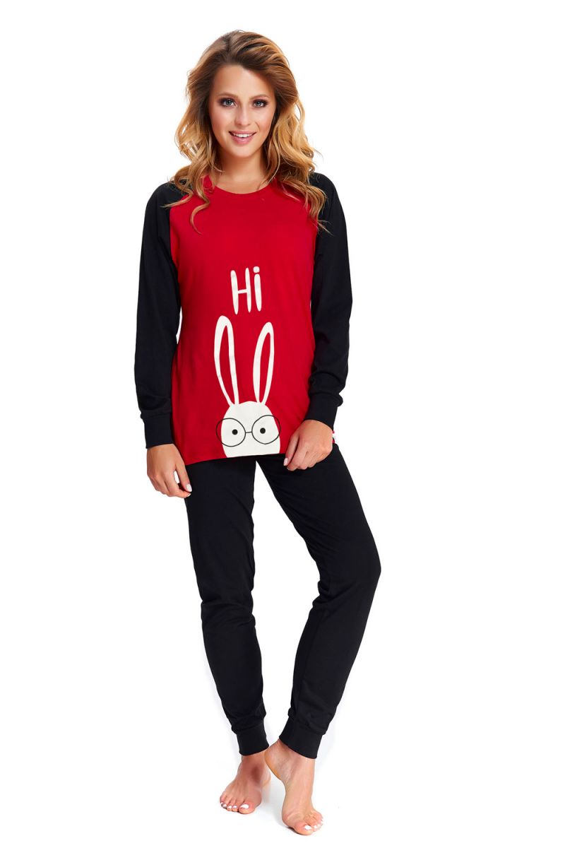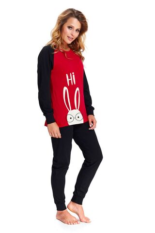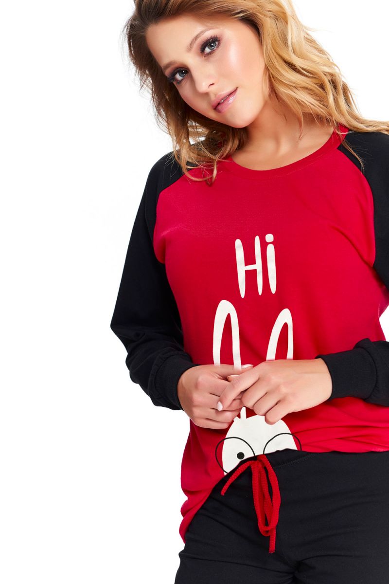 Молодежная пижама состоит из кофты свободного кроя и штанов с манжетой-резинкой по низу. Пижама декорирована забавным принтом. В комплекте: кофта, штаны.