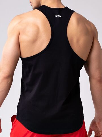 Мужская майка-борцовка из 100%-хлопка. Такая вещь великолепно будет смотреться в спортзале, на пляжном отдыхе, в домашней обстановке в сочетании с шортами или спортивными брюками. Фасон майки выгодной подчеркивает фигуру мужчины, его накаченное тело и крепкие руки. Дополнительный модный элемент – контрастный принт в виде эмблемы бренда на груди и логотип OPIUM сзади.
