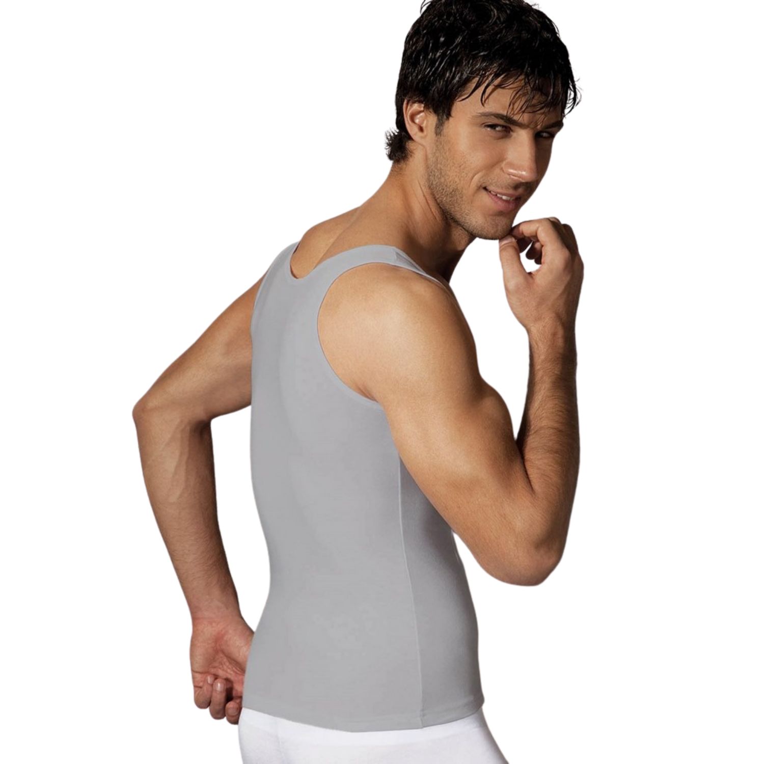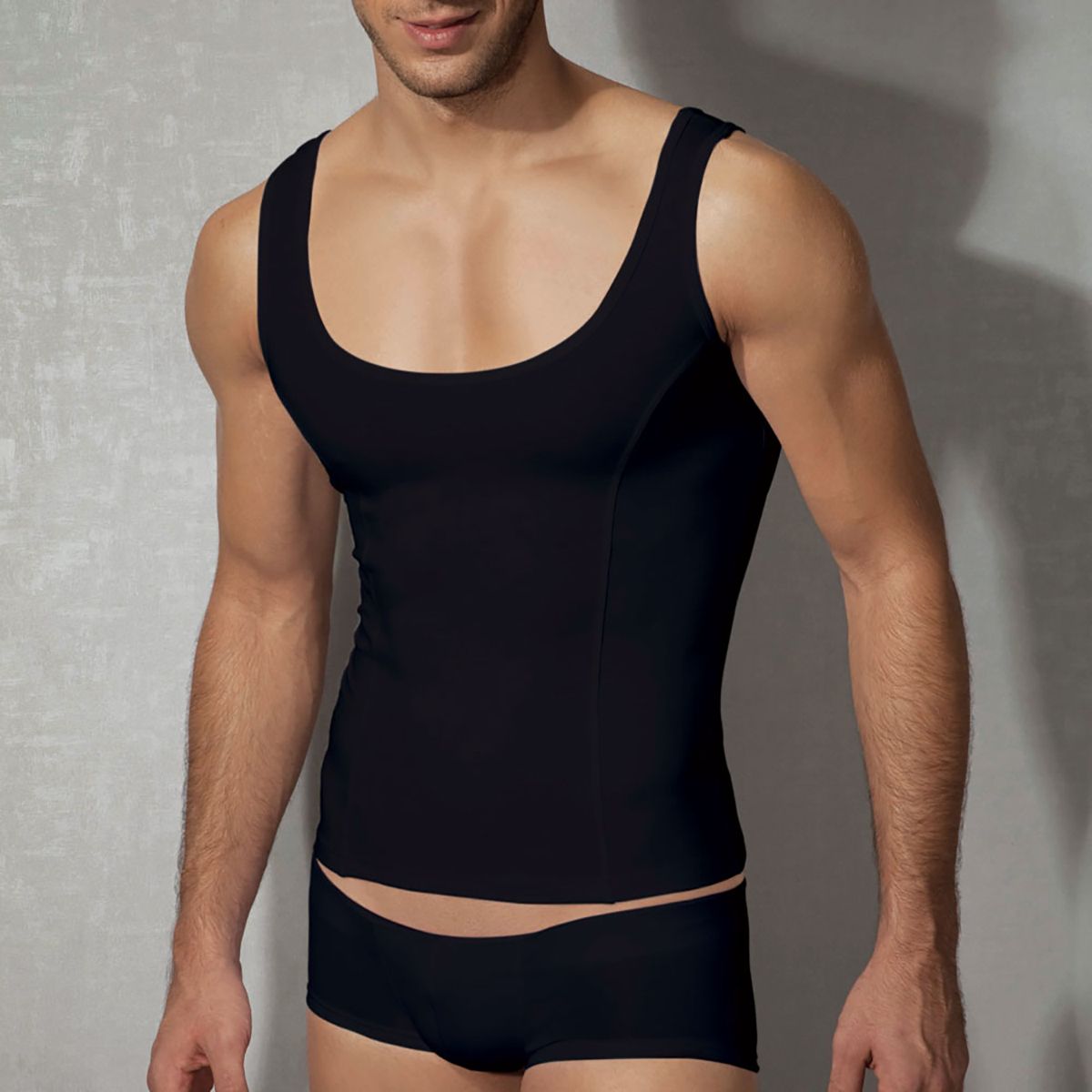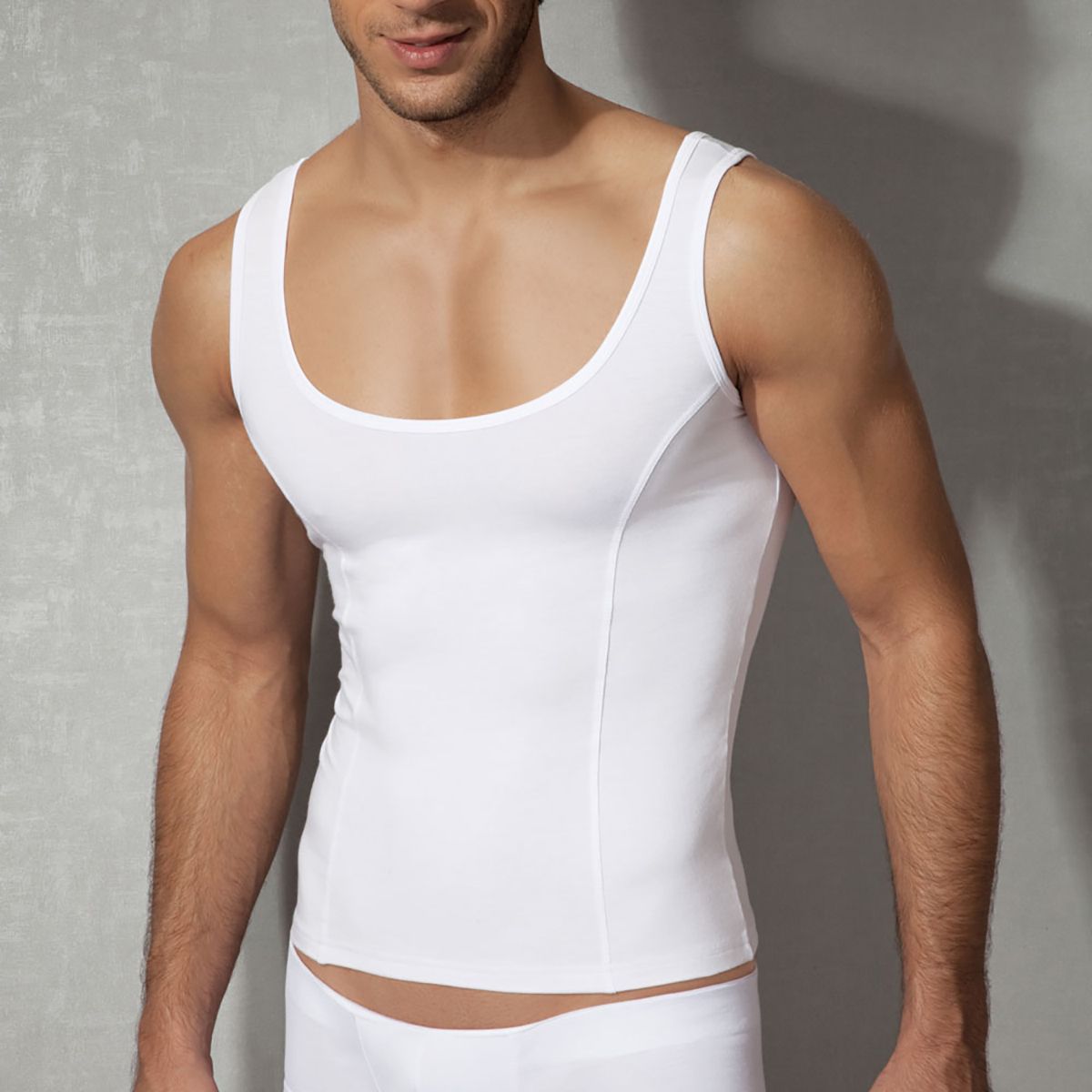 Немного укороченная модель облегающей маечки в спортивном стиле. Мягкий эластичный материал из натуральных волокон позволяет телу свободно дышать и хорошо впитывает влагу, поэтому эта майка подходит и для ежедневного использования, и для занятий спортом.