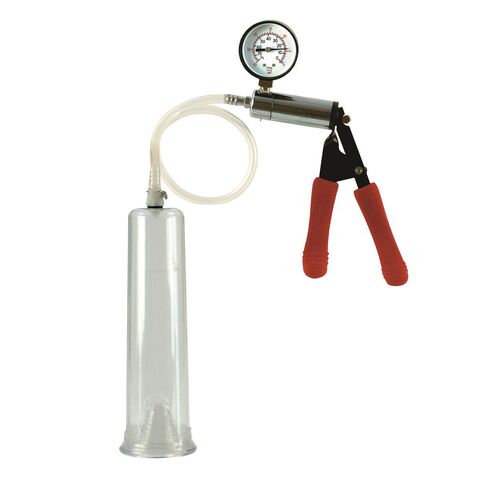 Вакуумная помпа с манометром. Колба из прозрачного пластика с мягкой насадкой из силикона. Удобный механизм для нагнетания воздуха управляется одной рукой. Рукоятки механизма обтянуты мягкими материалом красного цвета для наибольшей комфортности при использовании.