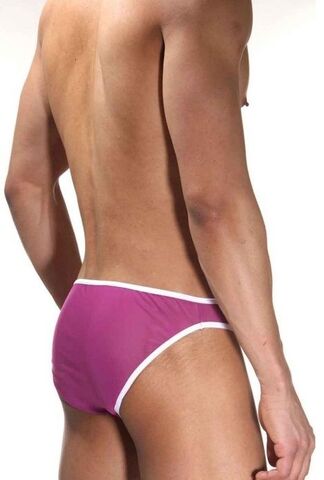 Мужские трусы-слипы, сшитые из сетки и контрастного кружева.
