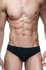 Мужские трусы-слипы из хорошо тянущейся черной ткани. Сзади на ягодицах белая кружевная ткань.