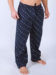 Удобные домашние мужские брюки из легкой хлопковой ткани. Модель свободного кроя на удобном поясе с резинкой. Шнурки позволяют регулировать посадку. На не тянущейся ткани нанесен принт с разноцветными пингвинчиками.