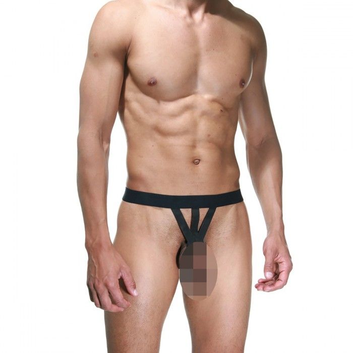 Мужские откровенные трусы из черных ремешков