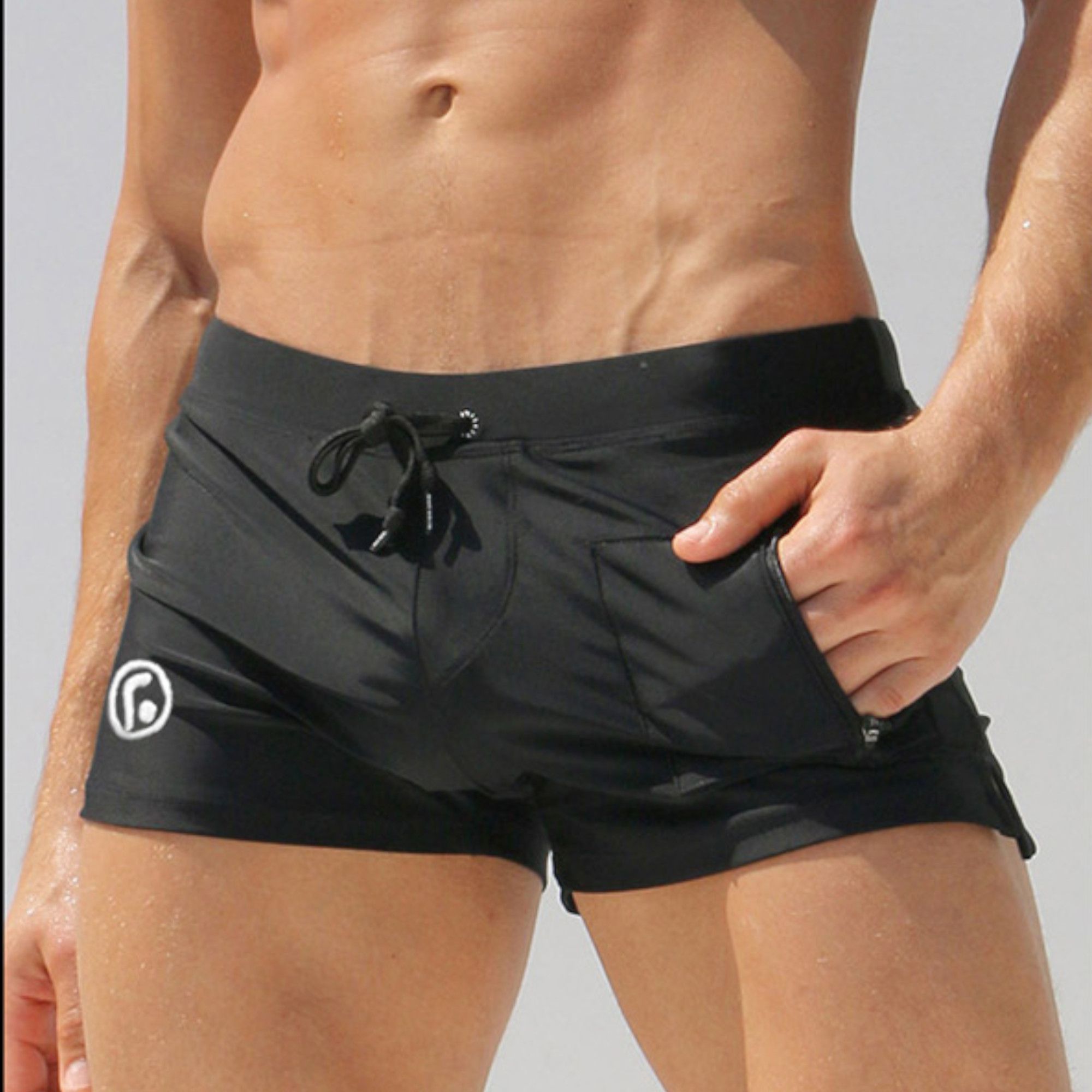 Мужские плавки-боксеры с имитацией гульфика и кармашком.