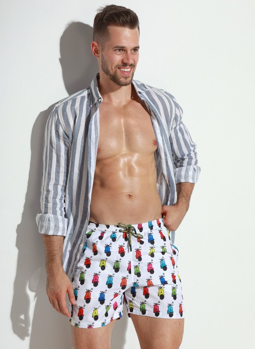 Мужские пляжные шорты с принтом в виде цветных мопедов