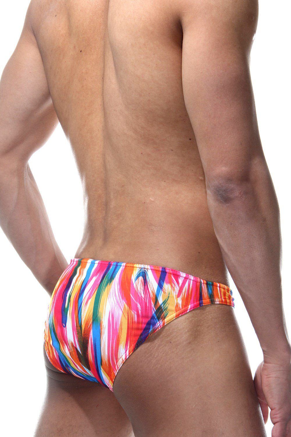 Мужские разноцветные трусы-слипы с узким бочком.