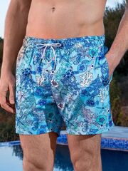 Мужские пляжные шорты от Doreanse с принтом на морские темы в сине-бело-голубых тонах. Внутри шорт вшита эластичная поддерживающая сеточка. По бокам 2 удобных вшивных кармана, сзади ещё один карман с нашивкой «DOREANSE». В эластичный пояс вставлен регулирующий шнурок со стильными металлическими наконечниками.